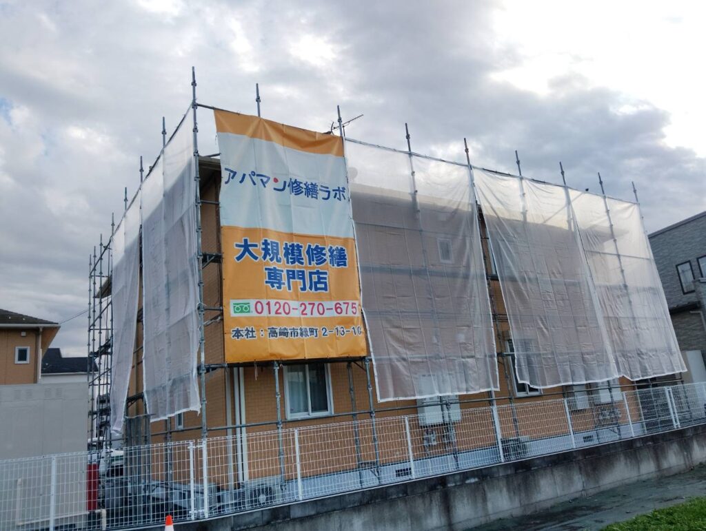 群馬県高崎市倉賀野町 築18年積水ハウスのアパート塗装着工中!